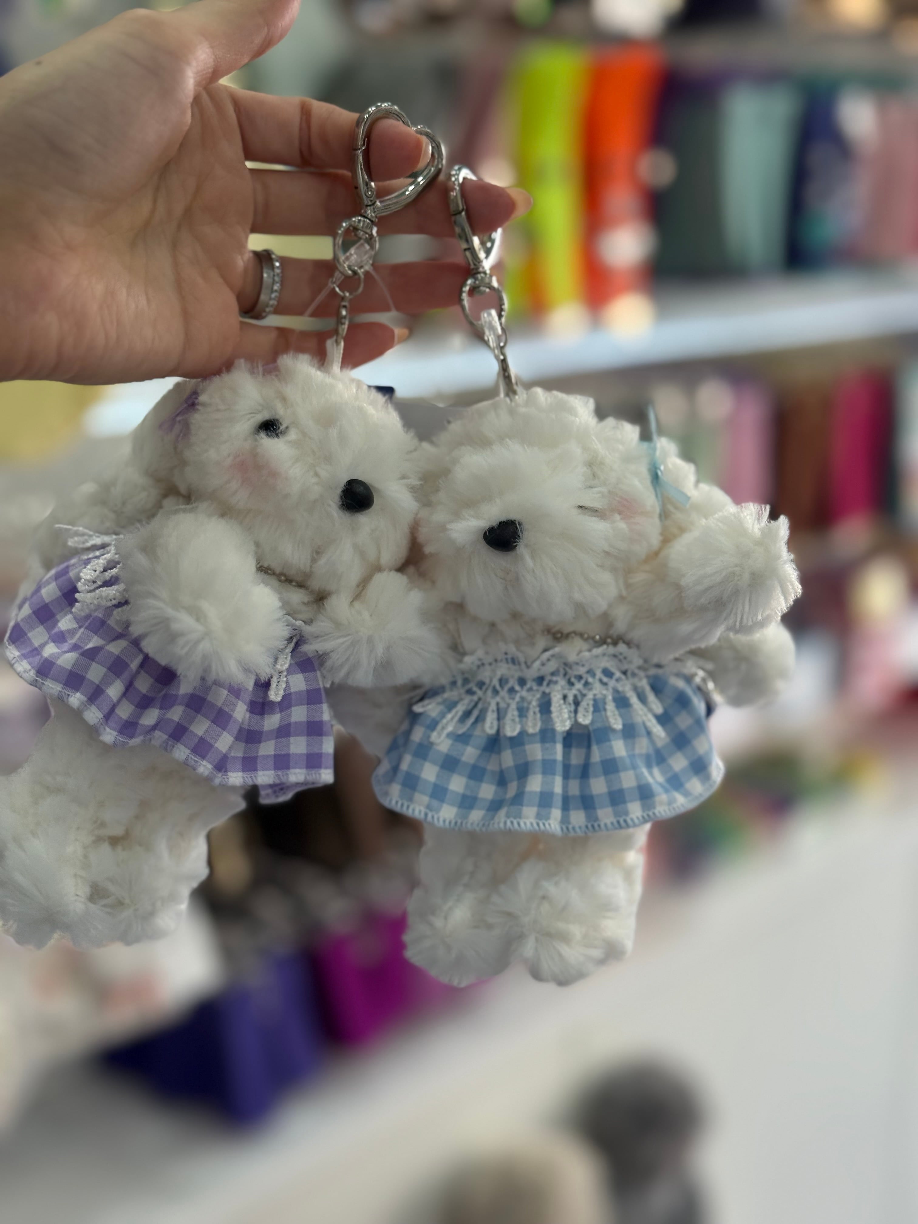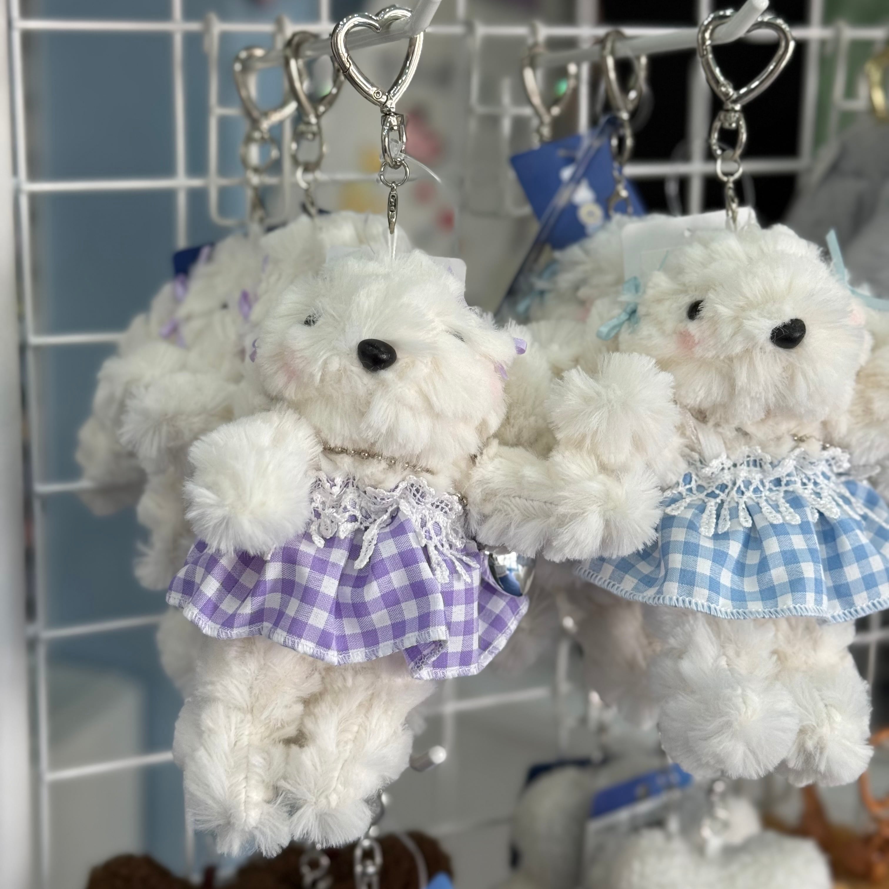 大きめのチャームでバッグに付けるととってもかわいいコーディネートに!パープルは大人っぽく、ブルーはかわいくうさちゃんにはチークが付いててとってもキュートです。