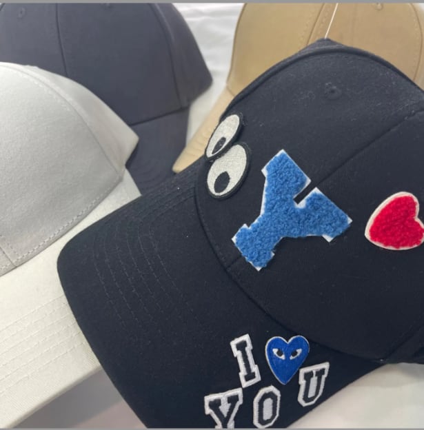 ワッペンを付けて自分好みのキャップにできちゃう!大きいアルファベットワッペンをワンポイントで付けたり、小さいワッペンをたくさんつけてもかわいく仕上がります!