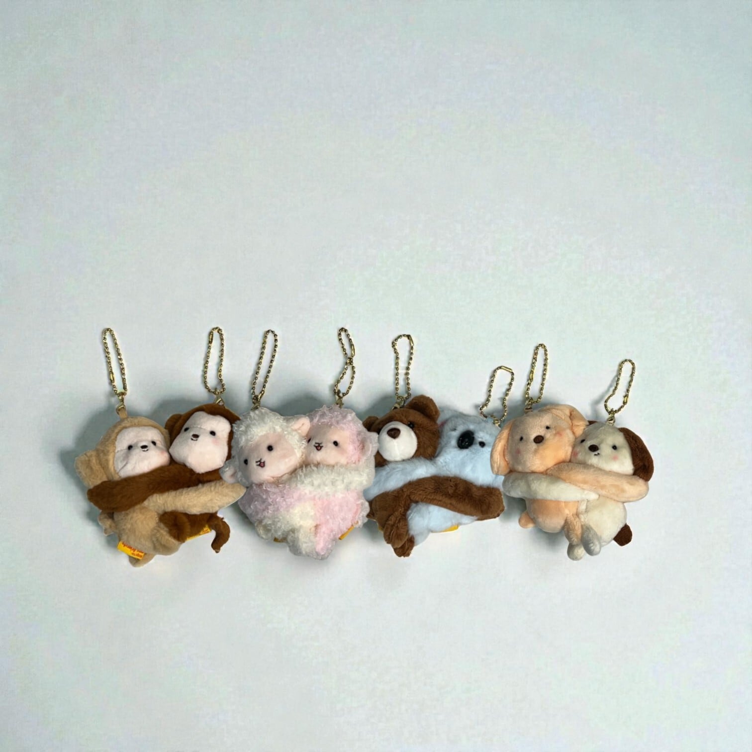 動物たちがぎゅーっとハグ!!しているキーホルダー。